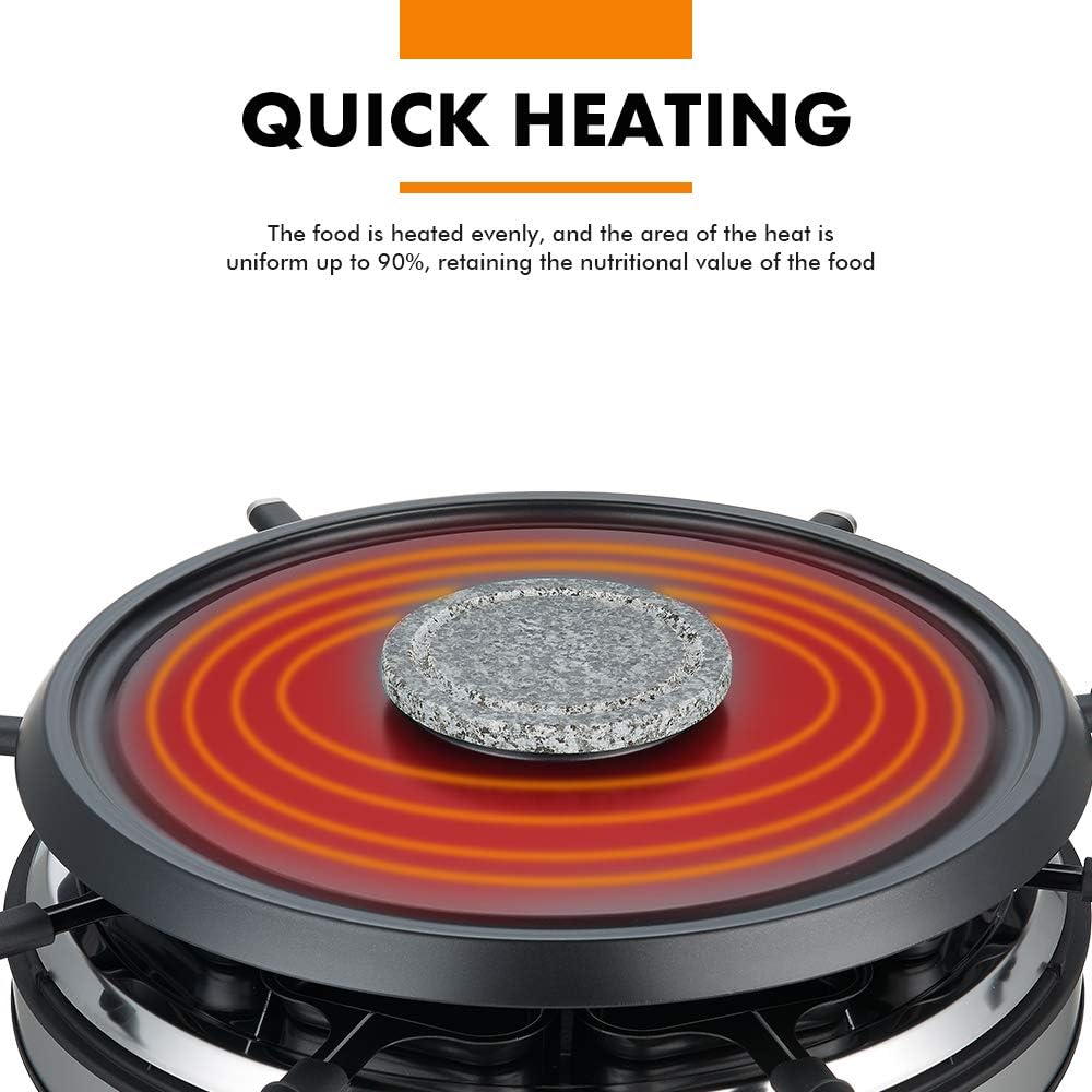 - Get All Accessories You Need Here - The raclette fondue combo includes one main grill pate, one fondue bowl, 8 pcs fondue forks, 8pcs mini grill pans, 8 pcs wooden spatulas and one grill stone. Get all you need for one price with one raclette fondue combo here!