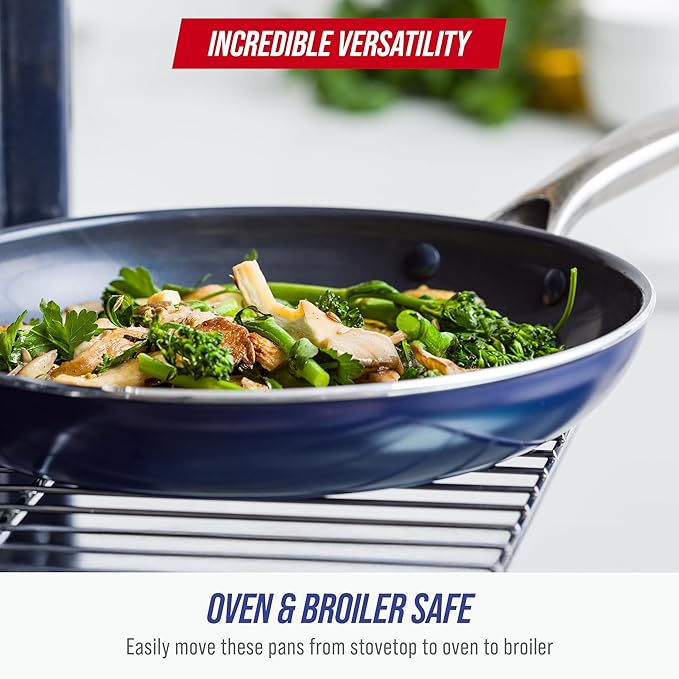 - 4X BETTER HEAT TRANSFER: Our pans heat up super quickly and evenly to save you time and energy. Say goodbye to cold or hot spots with the incredible heat transfer of Blue Diamond
