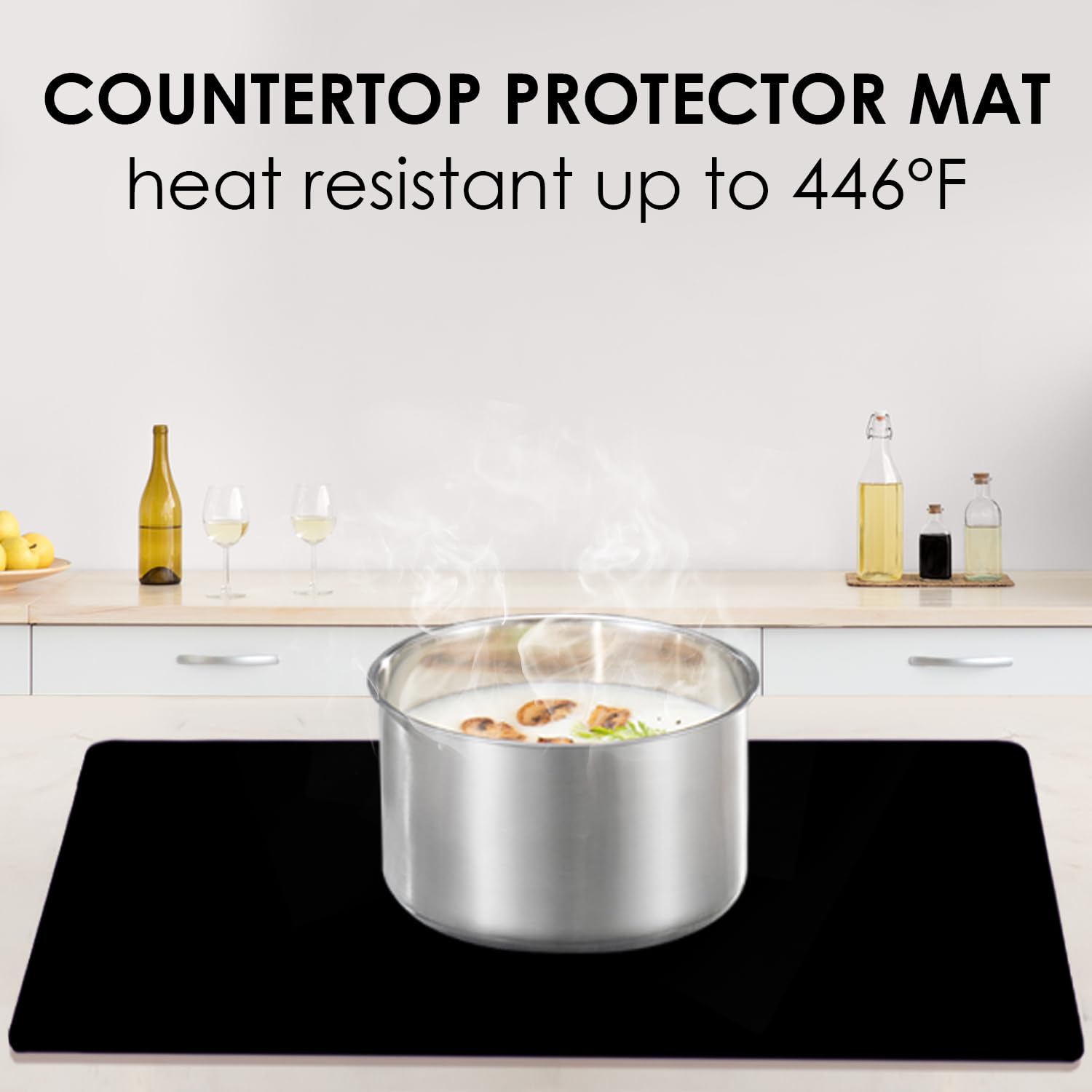 - 🍩【Heat Resistant Placemats Set】:The effective insulation of the 2 pack oversized table mats could reach to 446℉(230℃), can protect your dining table or countertop from heat containers. Please don't put the black silicone dinner mats near open fire. The black extra large mats can be curled or cut to your desired size. The black baking mats protect your countertop from pigment stains, glue, scratches, burns, grease, etc.