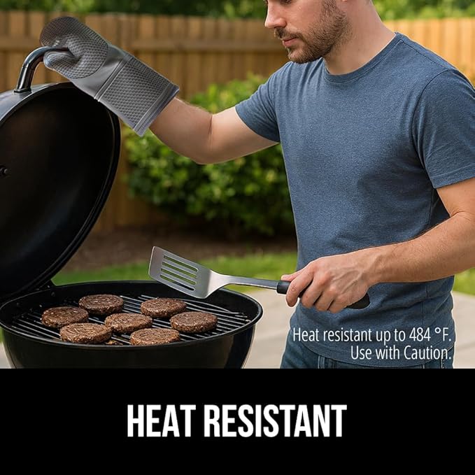 GORILLA GRIP BPA-Free Soft Silicone Oven Mitts, 14.5x8.3, Heat Resistant and Waterproof Cooking Gloves, Thick Cotton Lining, Flexible Gripping for Baking Grilling, Kitchen Potholders Set of 2, Gray