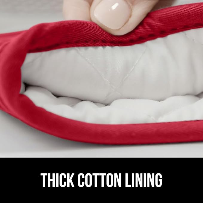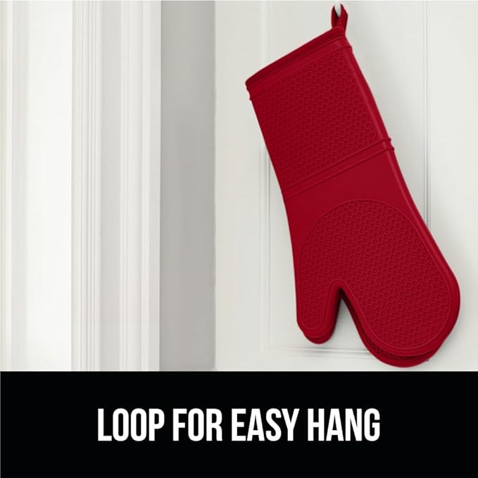 GORILLA GRIP BPA-Free Soft Silicone Oven Mitts, 14.5x8.3, Heat Resistant and Waterproof Cooking Gloves, Thick Cotton Lining, Flexible Gripping for Baking Grilling, Kitchen Potholders Set of 2, Red
