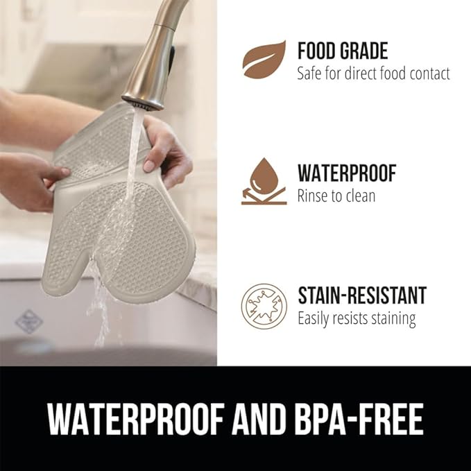 - FOOD GRADE AND BPA FREE: tested to be safe for direct contact with food, these mitts are food grade and BPA free and a perfect choice for any home
