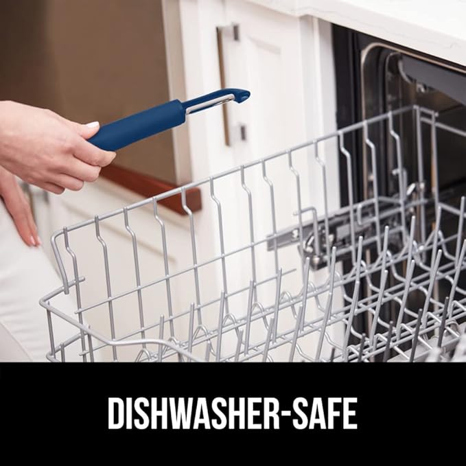 - SHARP STAINLESS STEEL: vegetable peeler's extra sharp and durable blades easily peel through even the thickest and toughest of produce; constructed from durable and rust-resistant stainless steel and designed to last; BPA-free, food grade, and dishwasher safe for easy cleaning