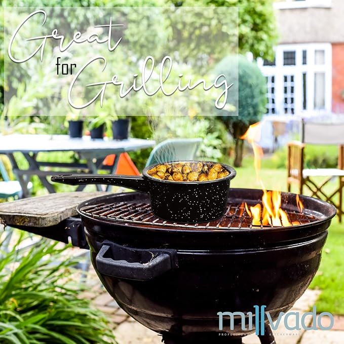 - SUITABLE FOR OUTDOOR USE: This set of small enamelware boiling pots work great on outdoor stoves, camp stoves, grills, and open fires. They are lightweight and small and easy to carry in a backpack - perfect for camping! Be sure to bring along a potholder, too, as the handles do get hot.