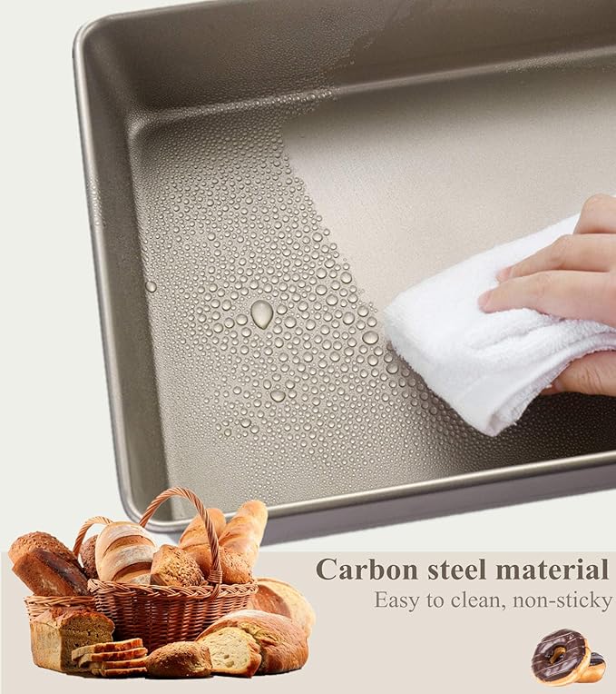 - Convenient&Durable: The nonstick baking pan set are made of heavy&quality carbon steel material, constructed with long-lasting baking performance. The edge of the baking pans is curled to ensure a comfortable grip, even with oven mitts to prevent slipping.