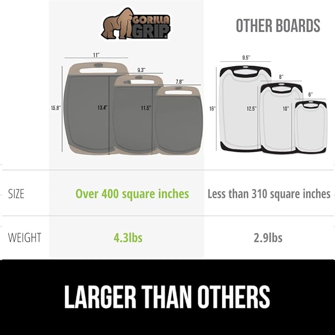 GORILLA GRIP BPA-Free Reversible Kitchen Cutting Board Set of 3, US Designed, Nonporous, Juice Grooves Catch Liquid, Slip Resistant Border, Dishwasher Safe, Durable Food Chopping Boards, Almond Gray