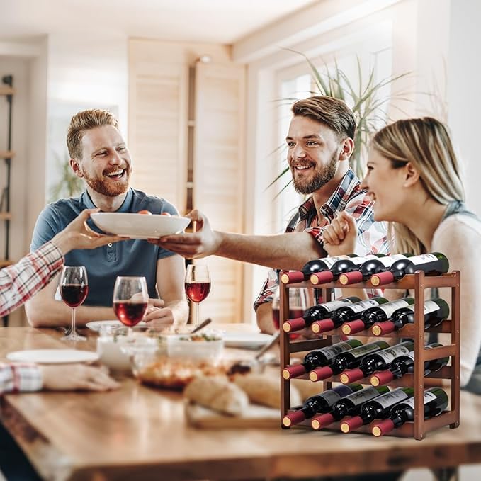 - đˇăDurable & Sturdy ăThe wine racks countertop are made of thick natural bamboo, which is solid, durable, and not easy to deform; Our bamboo wine rack is made of 100% Eco-Friendly bamboo with two layers of varnish on the surface, which makes this racks surface more smooth and extends its service life. Such a wine rack is perfect for home, kitchen, countertop, pantry, cabinet, dining room, and wine cellar.