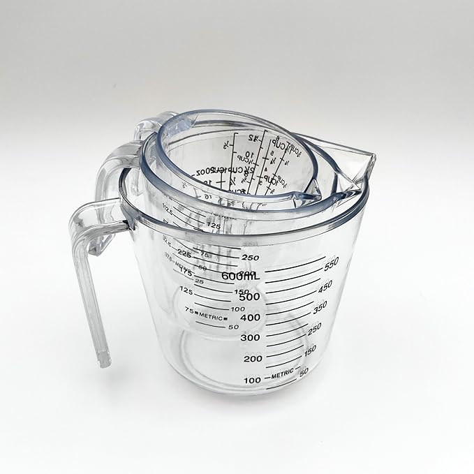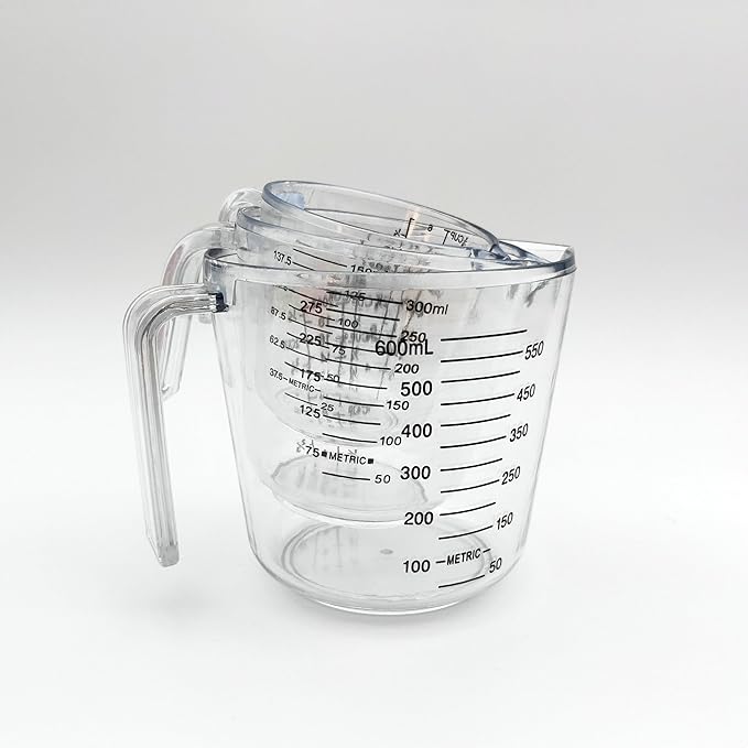 - Plastic measuring cups 3 pieces: measuring cup set includes 600ml / 300ml / 150ml, 3 cups of different capacities.