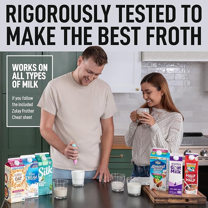 - PROVEN AND TRUSTED QUALITY: We use only premium materials. The construction will last, backed by our Zulay Guarantee to not rust or break, ever. Our small and efficient frother works on all types of milk - half and half, creamer, soy, almond, cashew, hazelnut, whole milk, and other dairy such as butter or cream.