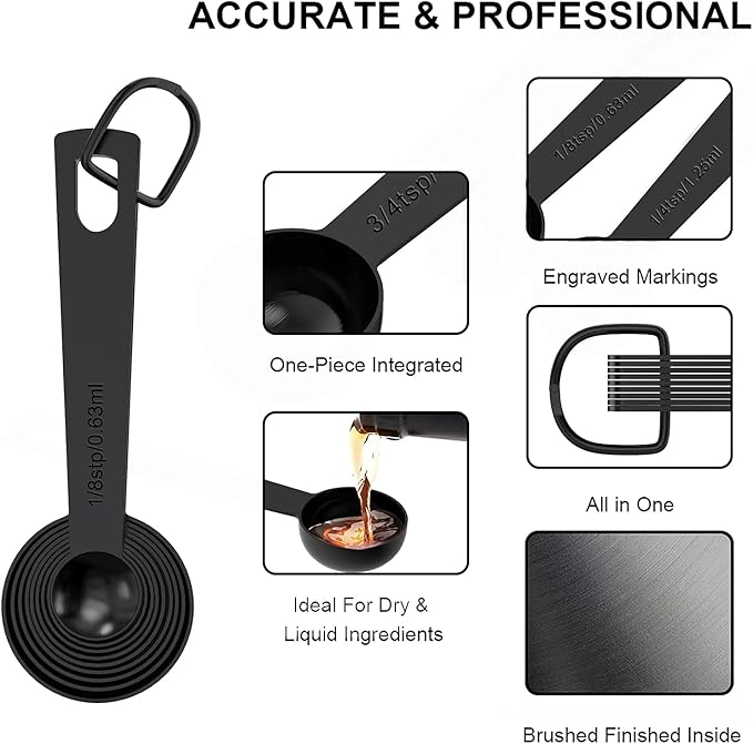 - NO MORE GUESSWORK: Each cup and spoon have engraved U.S. and metric measurement markings, which are easy to read and never fade. No more guess in kitchen!