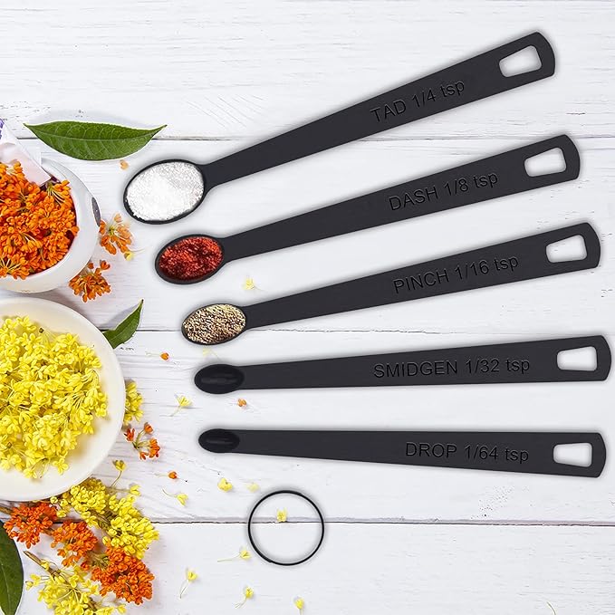 - CONVENIENT TO USE: The rectangular design of the measuring spoons is slim and narrow to fit into small spice jars or herb containers, ideal for measuring any amounts. You don't need to shake spices onto the spoon so you will save more and waste less of your spices and also make your kitchen clean and no more clutter.
