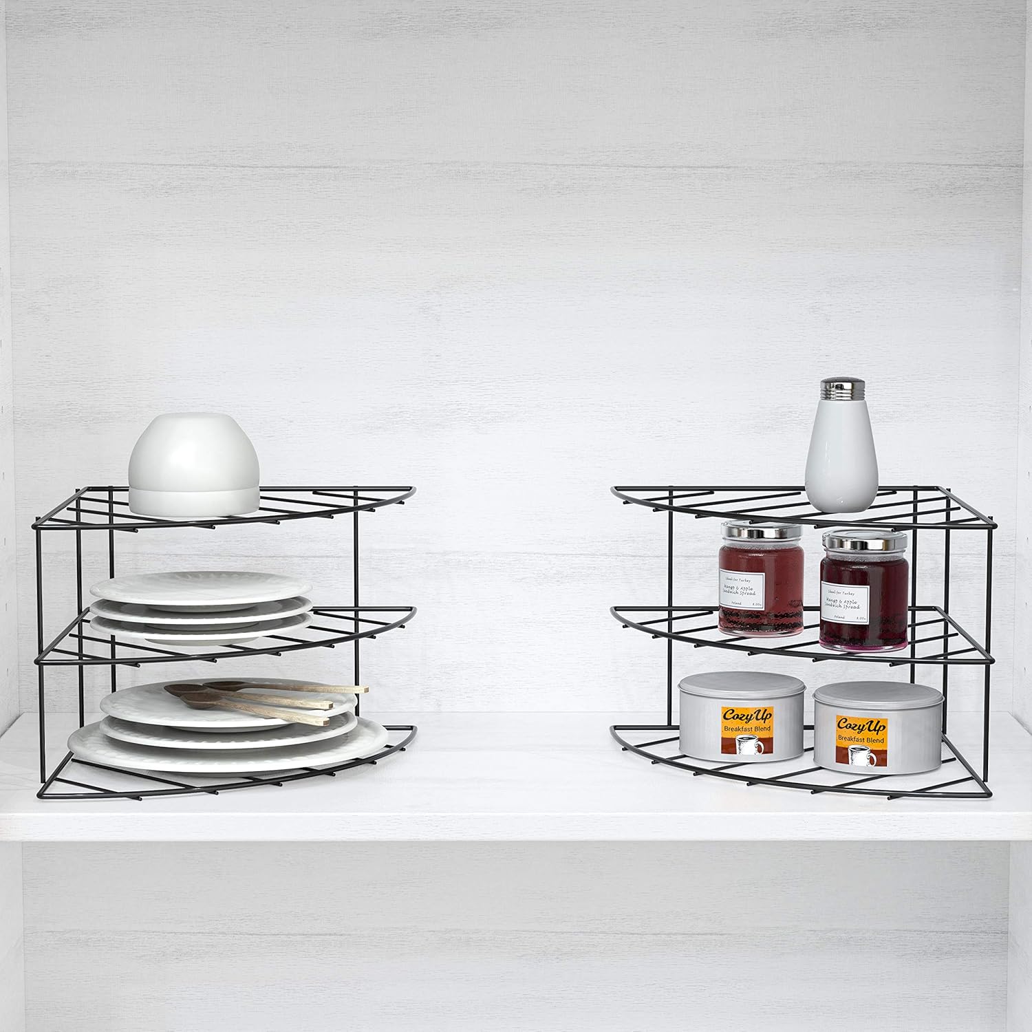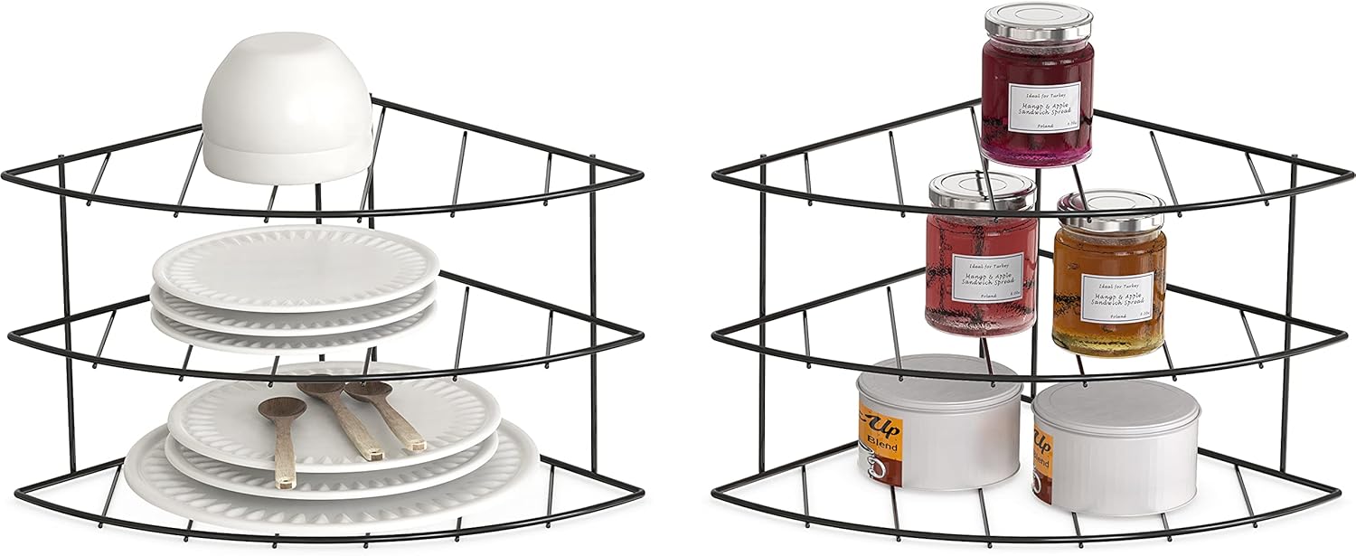 Deco Brothers 3-Tier Counter and Cabinet Corner Shelf Organizer, 2 Pack, Black