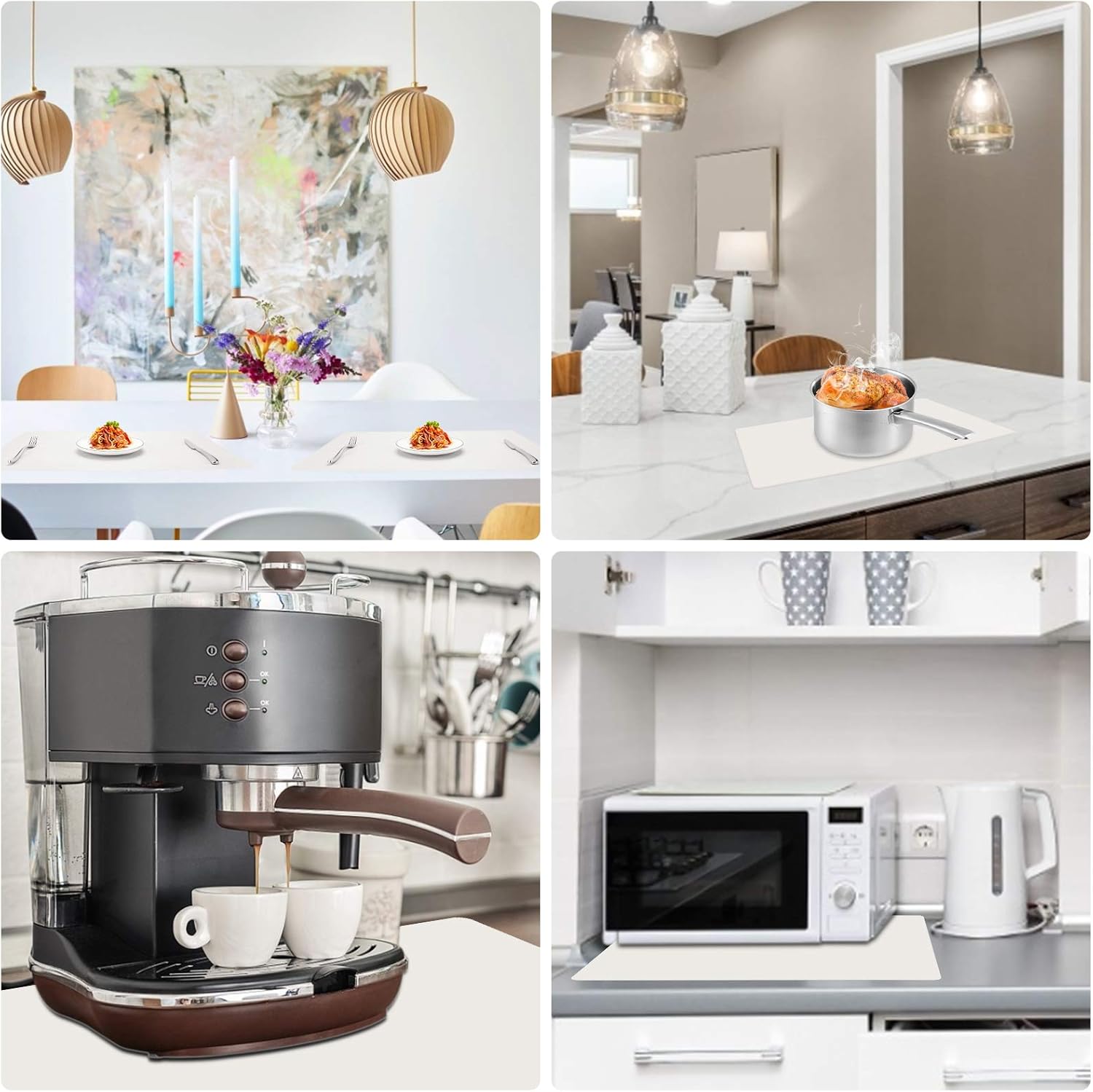- Size :Sized at 25"x 17"x 0.03"(Length x Width x Thickness), large enough to protect your counter top, it can be placed under the microwave, air fryer, induction stove, toaster oven, coffee maker etc.