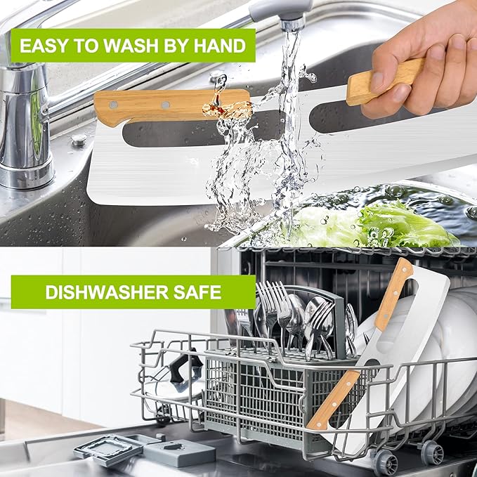 - [EASY CLEANING & STORAGE] - Features with plastic protective sheath for safer handling and easy storage. No need to disassemble the pizza cutters, just rinse this pizza knife under running water or place in the dishwasher for hands free cleaning. Easy to clean and dishwasher safe!