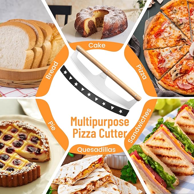 - [NOT JUST A PIZZA CUTTER] - Measures approximately 16 inches (15.98x4.5x 0.98') - ideal for cutting any small, medium, and large pizza with ease.and also the nice pizza accessories for cheese, cake, bread, pastry, sandwich, pies, herbs, fruits & vegetables.