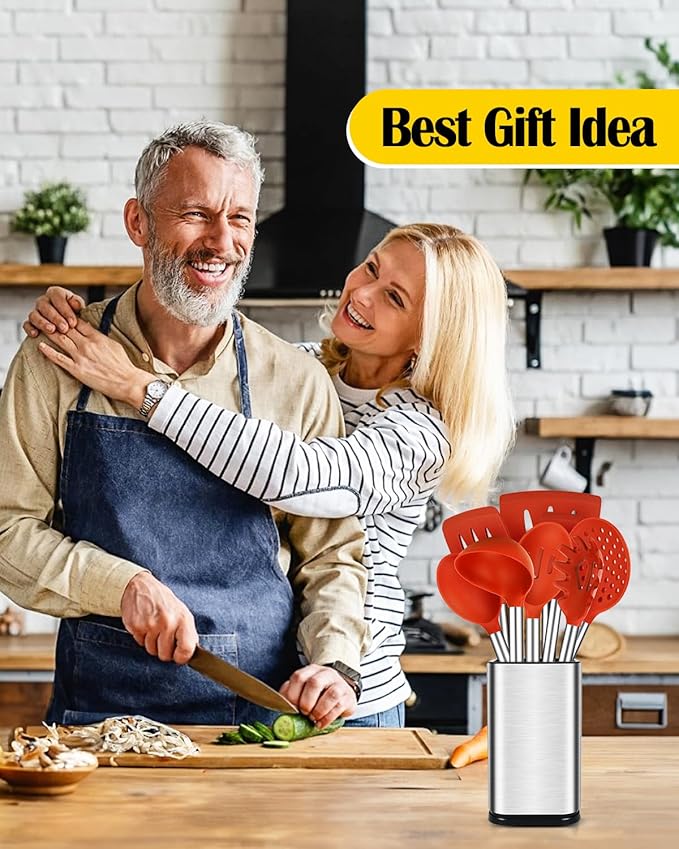 - Thoughtful Design : The good-quality 18/8 stainless steel keeps you away from the trouble of kitchen utensils rusting or breaking; This anti-scald silicone handle is not easy to conduct heat and is more comfortable to hold than traditional utensils