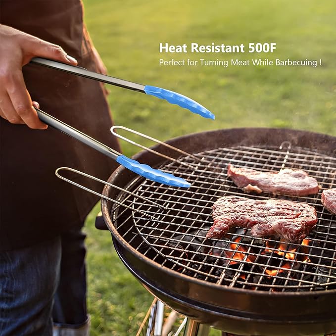Silicone Spatulas Set Turners Tongs Cooking Utensils Set High Heat Resistant Kitchen Scraper Spatulas for Cooking Mixing Baking BPA Free Dishwasher Safe, Blue