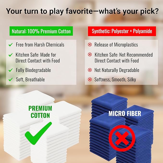 - MULTIPURPOSE: Their lint-free pure ring-spun cotton composition makes them perfect for drying glassware, hands and surfaces. Moreover, they excel at tasks like cheese straining, salad spinning, and even serving as reliable dough covers for baking.