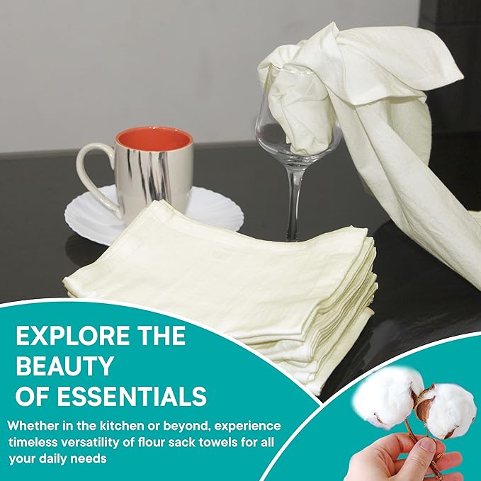 - VERSATILE USES: These cotton flour sack towels can be used in the kitchen for drying dishes, wiping counters, or proofing bread. They are also suitable for crafts or decorating.