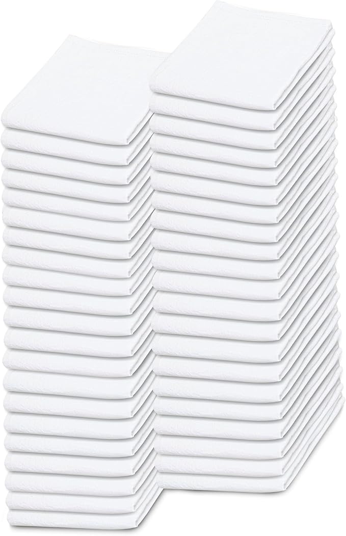 Flour Sack Kitchen Towels |Cotton Blank Towel | Tea Towel Crafting Embroidery | Thick Absorbent Quick Dry | Baking Bread Proofing Linen Cover White, 18"x28" - 50 Pack