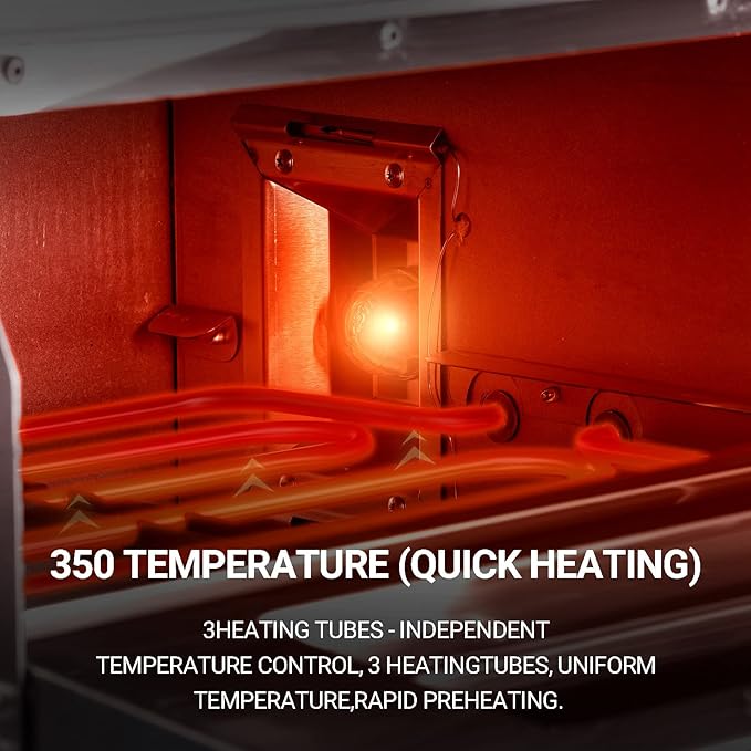 - 【HIGH QUALITY】Made of the stainless steel material, durable and sturdy to use, ensuring a high-quality countertop pizza oven for long time usage. It looks dedicate, easy to clean and maintain.