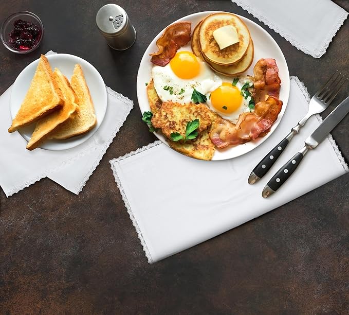 - Elegant Lace Design and Generous Size: Each napkin features a beautiful lace border that adds a touch of sophistication to your table setting, making it ideal for special occasion. These napkin measure 18x18 inches, providing ample coverage and a stylish backdrop for your dinnerware.