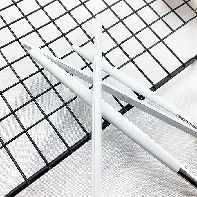 JASHII Flatware Serving Set 24 Piece, Stainless Steel Silverware Set, White Silver Cutlery Set, Modern Elegant Tableware Set for Party, Christmas, Dinner (White Silver)