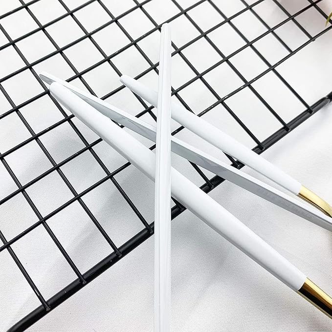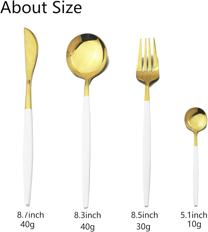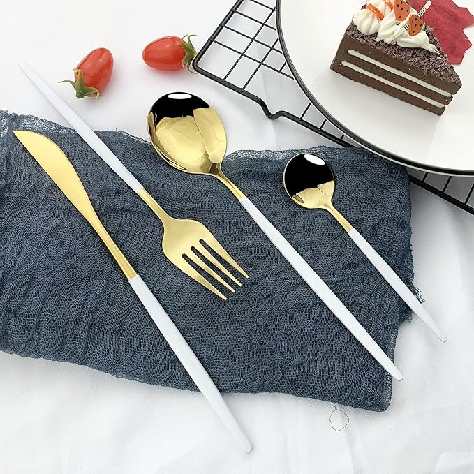 JASHII Flatware Serving Set 24 Piece, Stainless Steel Silverware Set, White Gold Cutlery, Modern Elegant Tableware for Party, Christmas, Dinner