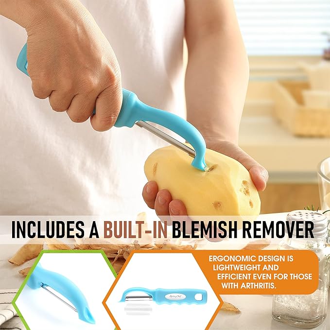 Spring Chef Premium Swivel Vegetable Peeler, Soft Grip Handle and Ultra Sharp Stainless Steel Blades - Perfect Kitchen Peeler For Veggie, Fruit, Potato, Carrot, Apple - Aqua Sky