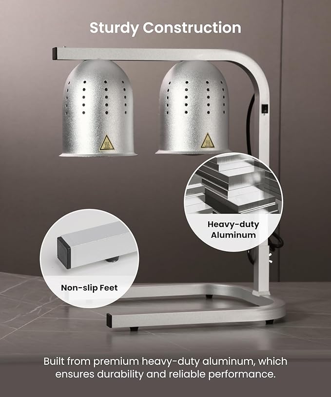 - Sturdy Construction: Crafted with high-quality, heavy-duty aluminum, this food heat lamp warmer is built to withstand the rigors of professional kitchens, ensuring reliable performance over the long term