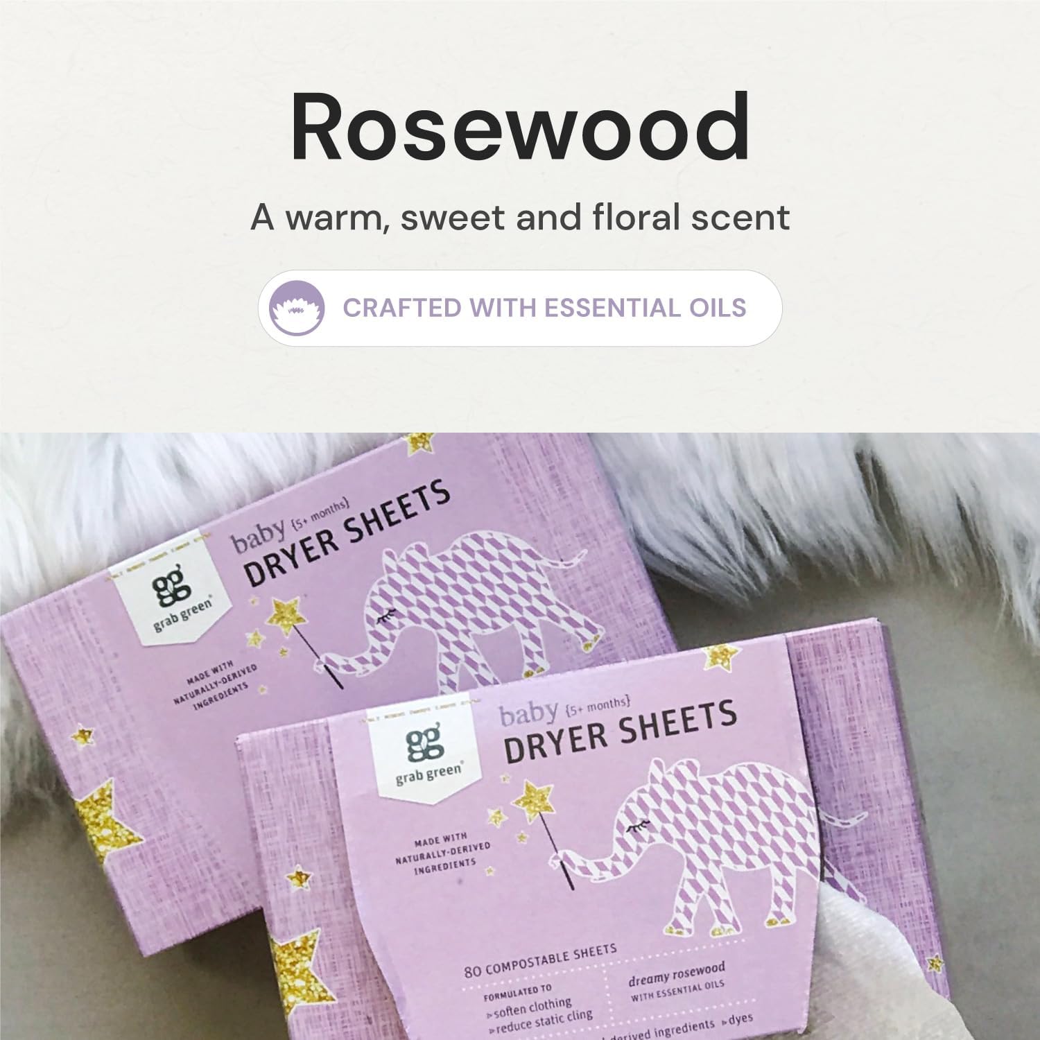 - Contains: 2- 80 Sheet Boxes of Grab Green Natural Baby Dreamy Rosewood Dryer Sheets (160 Sheets Total)