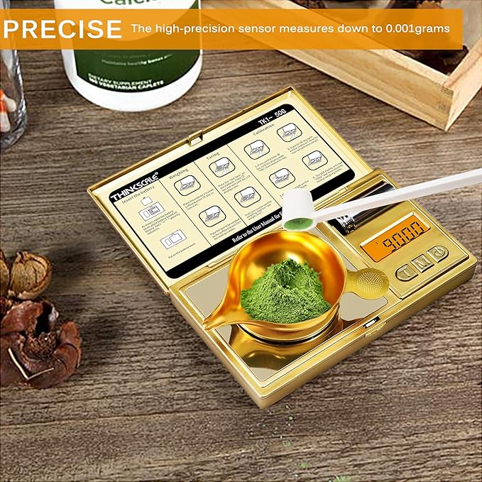 THINKSCALE 50g/0.001g Digital Milligram Scale, Gold Mg Scale with 50g Calibration Weight, Powder Scale for Reloading, Micro Gram Scale, Miligram Scale for Powder Medicine