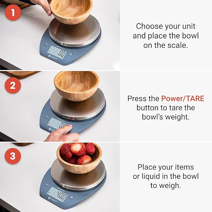 Etekcity 0.1g Food Scale, Bowl, Digital Grams and Ounces for Weight Loss, Dieting, Baking, Cooking, and Meal Prep, 11lb/5kg, Stainless Steel Prussian Blue