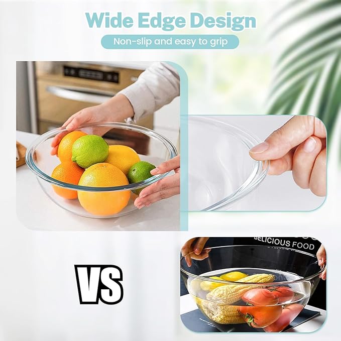 - 【 High Temperature Tolerance 】: The glass mixing bowls set are made of high borosilicate material, and tolerates -4℉ to 1040℉ , access to microwave,oven,fridge and freezer directly(excludes the Lid).