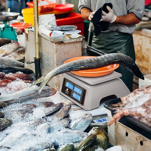 - [Readable Dual Display] This computing scale has a 3-line, highly visible LCD screen that displays weight, unit pricing, and total price on the front and rear of the device. This makes it simple for buyers and sellers to see while the scale is in operation. It features a temperature range for operation from 32 to 104 °F (0 to 40 °C).