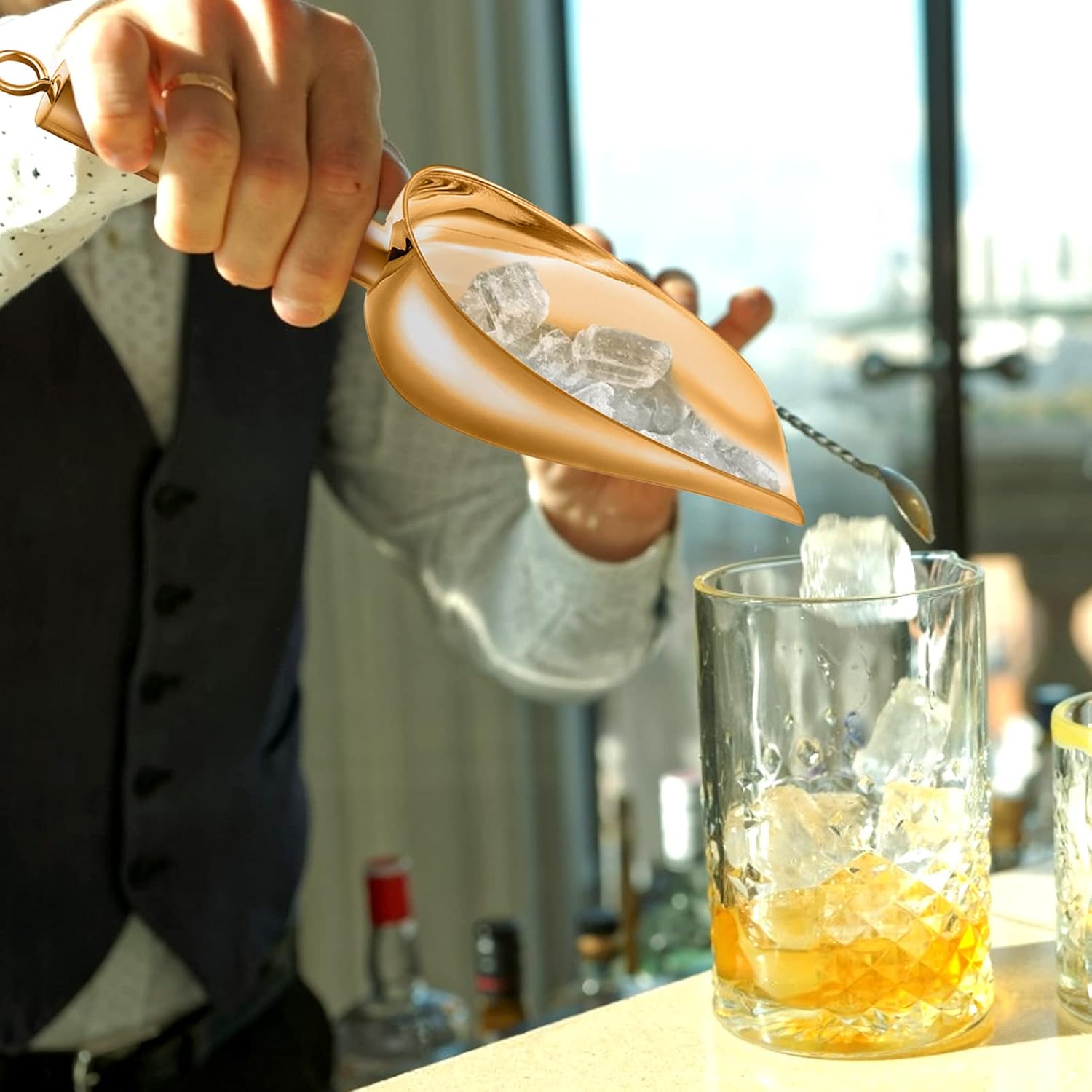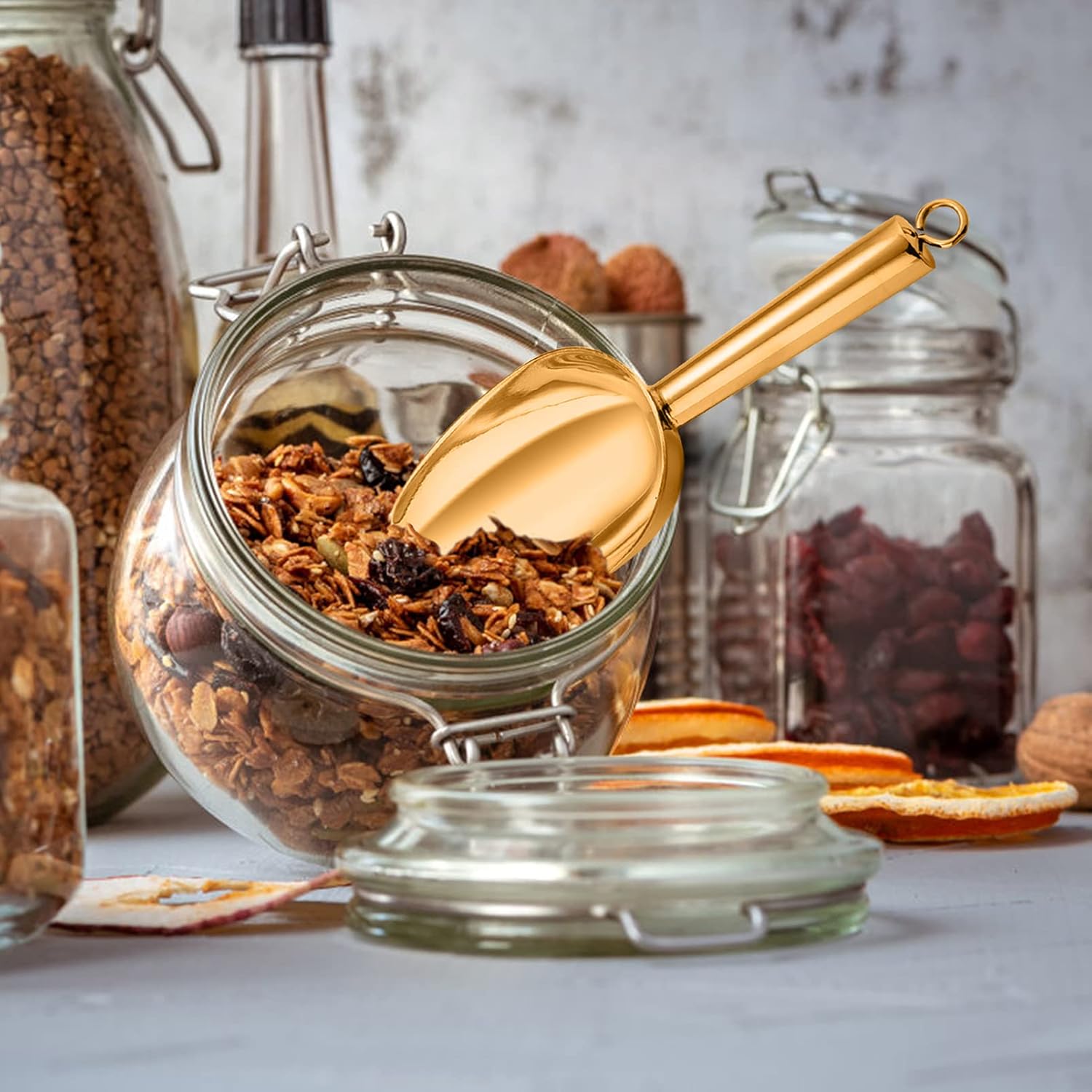 TeamFar 5oz Ice Scoop, Stainless Steel Food Scoop Metal Ice Scooper for Kitchen Bar Party Wedding, Heavy Duty & Sturdy, Easy Storage & Versatile, Mirror Finish & Smooth Edge, Gold