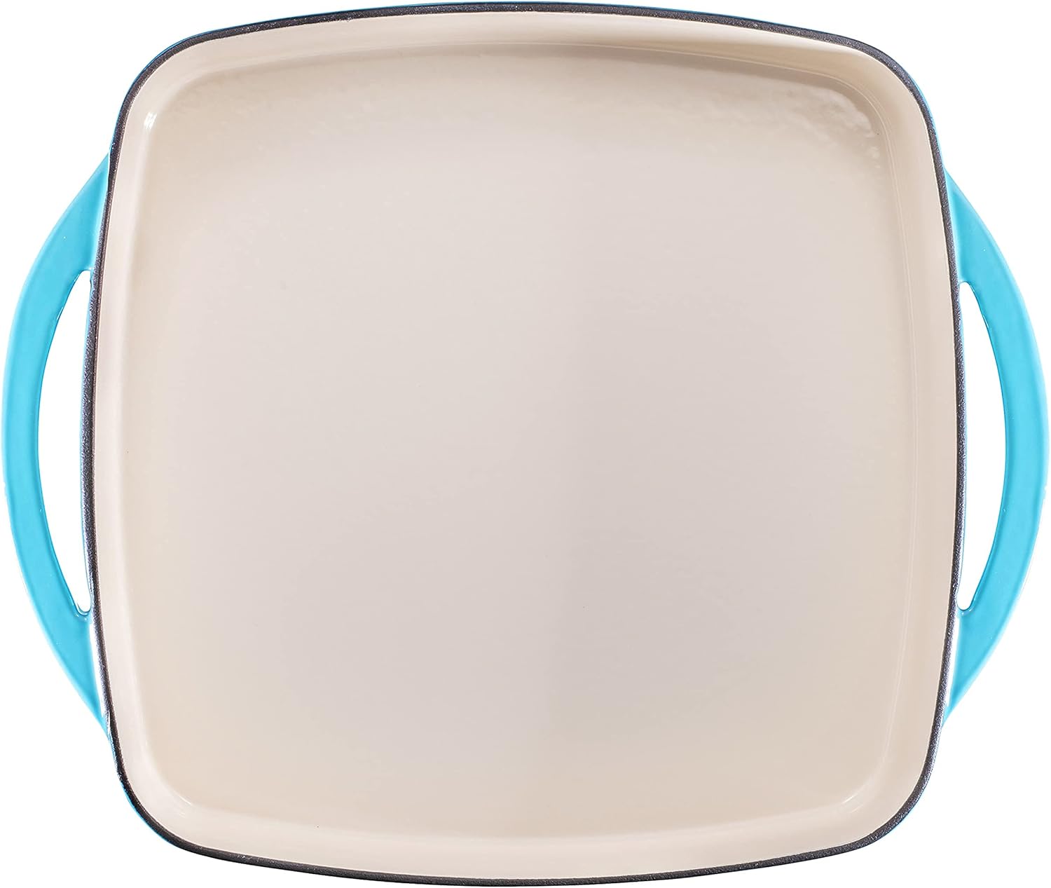 Bruntmor 2-in-1 Pre-Seasoned Square Cast Iron Dutch Oven with Dual Handles, Non Stick Pan with Grill, All-in-One Cookware Set, Cast Iron Casserole Dish with Lid for Braising Dishes,Caribbean Blue