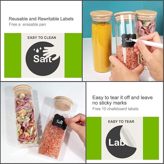 - Value Pack: 10 pack 14 oz/ 450 ml glass storage containers with airtight bamboo lids, water-resistant labels and chalkboard pen
