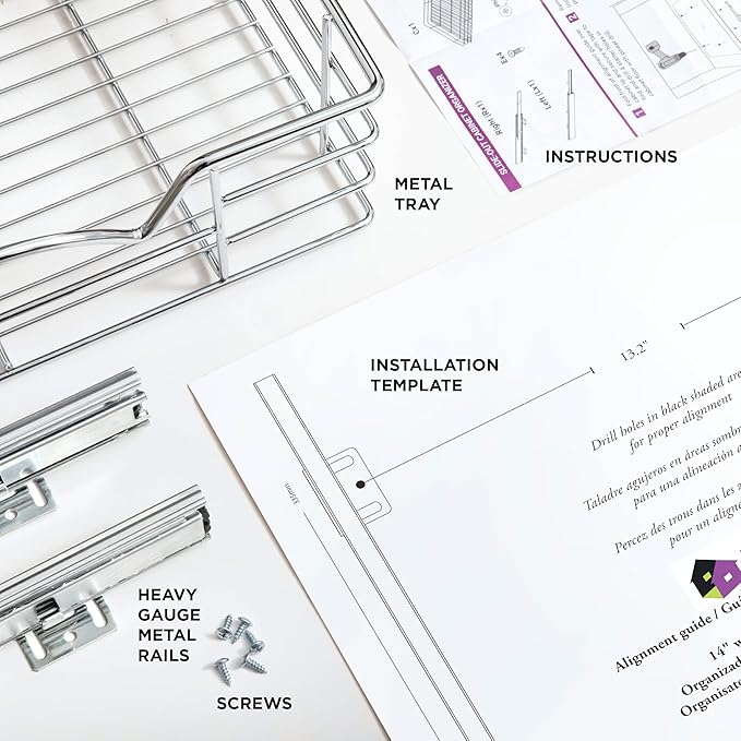 - QUICK & EASY INSTALLATION: Pre-assembled and ready to install in under 30 minutes. Includes step-by-step instructions and all necessary hardware. Fits most 13” wide cabinet openings, it measures 12.5"W x 21”D.