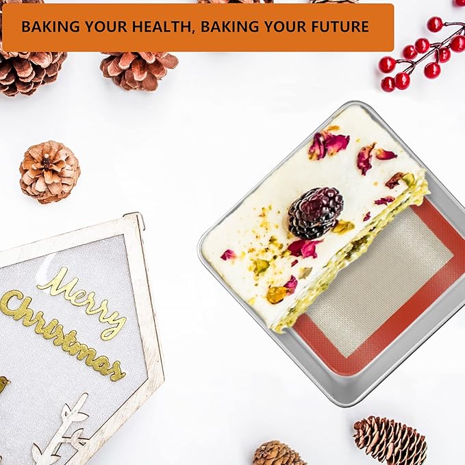 - 【HEALTHY AND CONVENIENT】 Today, more and more people like to go diet or keep fitness from less oil intake. With these cooks’ essentials silicone baking mats square, no need any parchment paper, aluminum foils or grease, cooking sprays, oils, etc. on your cake pan or other square baking pans any more. Help with your health, your wallet and the earth.