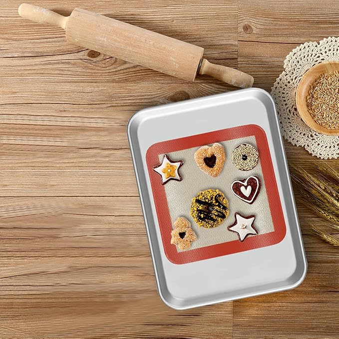 - 【MULTI-PURPOSE】This square baking mat is mostly ideal for toasting and baking bread, cakes, macaron, pastries, tortilla, jellyroll, baked cookies, or other baked foods. You can also use it as a pan/bowl/sheet mat, rolling mat, cake pan liner, pastry mat, pizza liner, or even small cooktop mat and place mat.