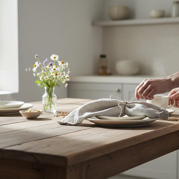 - Quality craftmanship created from pure french flax with the stitching perfectly matched to the same color as each napkin and the texture of the fabric feels very soft. OEKO-TEX Standard 100 certification (tested and proven free of harmful levels of toxic substances)
