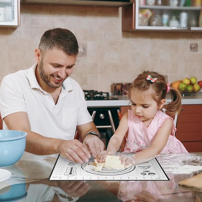 - NON-STICK SURFACE: Do not need to use extra flour or oil, this large nonstick sheet keeps work surfaces clean so you donโt have to spend hours scraping the dried dough off your counter-tops! Even if grease or dough sticks to the surface, pastry mat can be easily cleaned to keep countertop clean and sanitary.