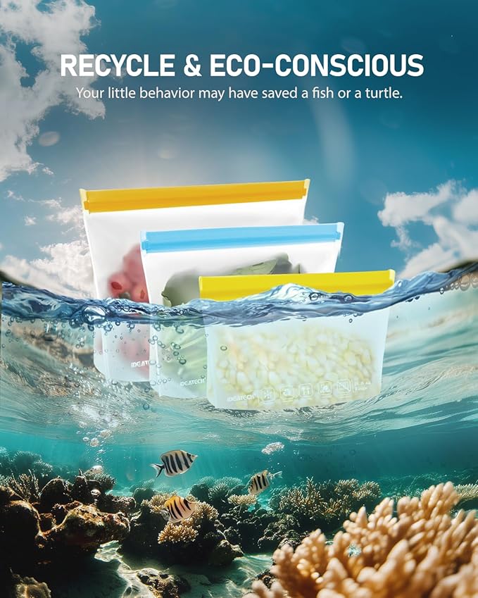 - Food Grade Reusable Bags: Made of food grade PEVA , reusable storage bags are PVC-free, lead-free, chloride-free and BPA FRE. They are not harmful to the environment. Also,you donโt need worry about your heath with these food bags