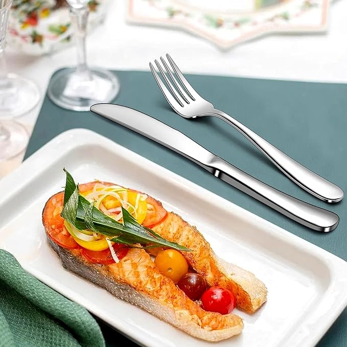 - Exquisite workmanship, highly mirror polished, smooth and shiny metallic sheen make cleaning effortless, each piece was carefully polished without rough edges and gaps, ensure the safety of your lip, practical eating utensils set would be a perfect surprise for housewarming, thanksgiving, Christmas