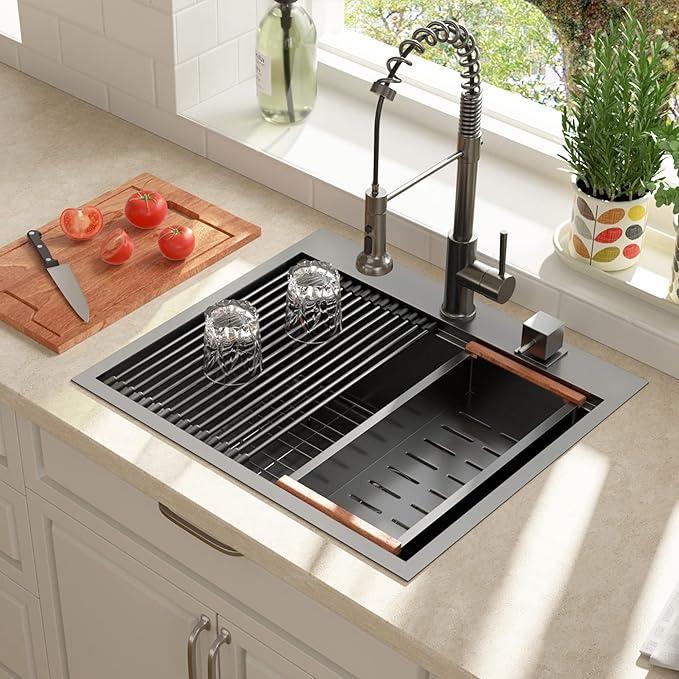 25 Black Kitchen Sink Drop In - LORDEAR 25x22 Inch Kitchen Sink Workstation Gunmetal Black 16 Gauge 304 Stainless Steel Topmount Overcounter Kitchen Laundry Utility Room Sink Basin