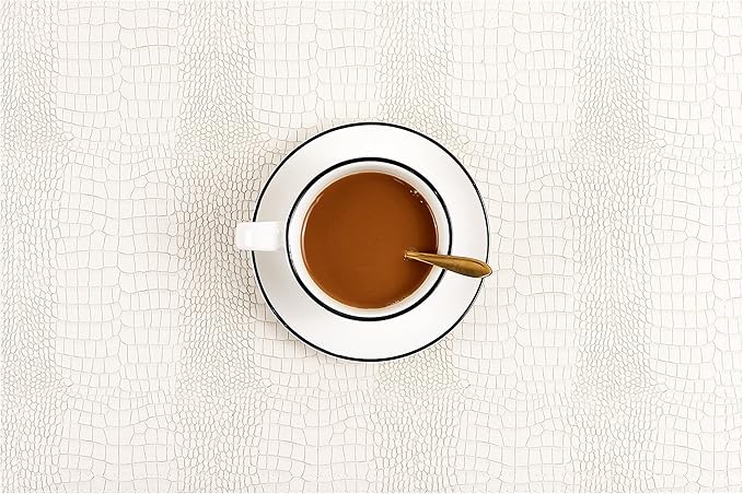 Faux Leather Hardboard Placemats, Set of 6 PU Table Mats, Easy to Clean, Heat & Stain Resistant for Office Conference Table, Dining Home Decor, White