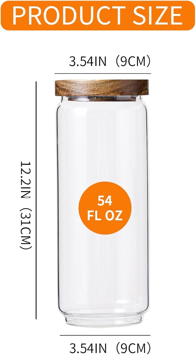 Glass Storage Containers Set of 3, 54 OZ High Borosilicate Glass Jars with Wooden Lids Kitchen Food Canisters s for Coffee Beans/Sugar/Noodles/Nuts/Cookies/Pasta