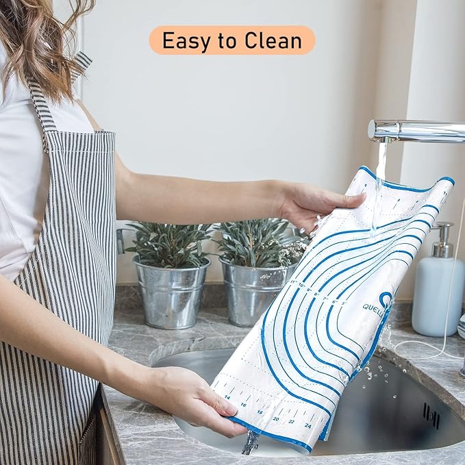 - NON-STICK SURFACE: Do not need to use extra flour or oil, this large nonstick sheet keeps work surfaces clean so you donโt have to spend hours scraping the dried dough off your countertops! Even if grease or dough sticks to the surface, pastry mat can be easily cleaned to keep countertop clean and sanitary.
