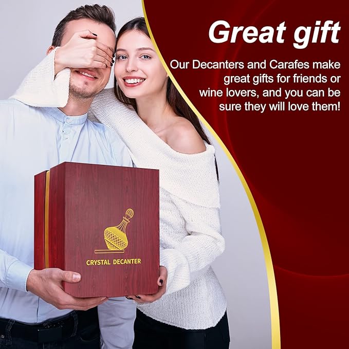 - Exquisite gift packaging: You will have a beautiful display of such exquisite craftsmanship in the bar, kitchen counter or wine cabinet, impress your guests, amplify the ambience, this glass decanter wine accessories will be a nice elegant decoration on the table or in the kitchen to family, lovers or friends.
